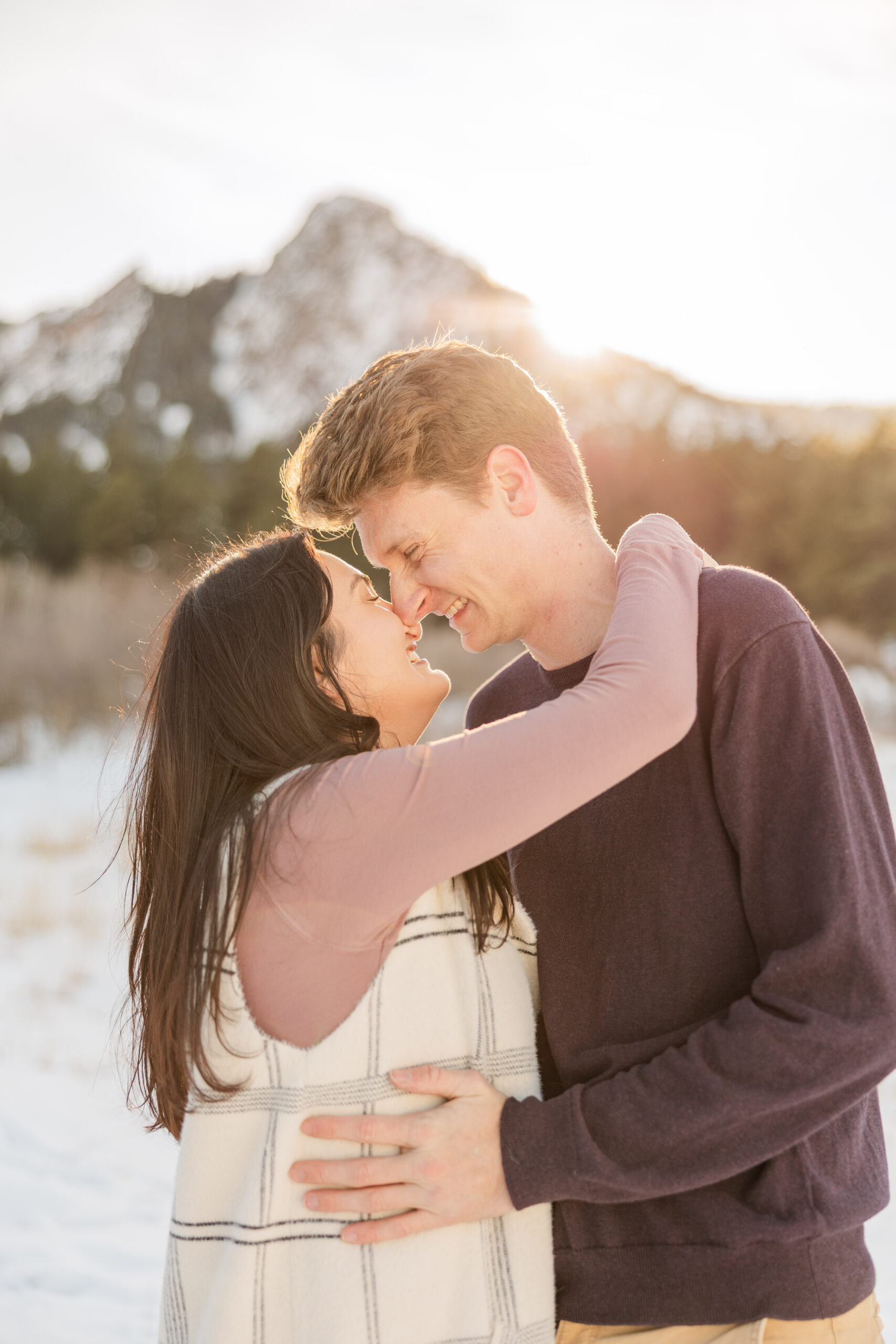 Couple’s snowy photo session at the Flatirons