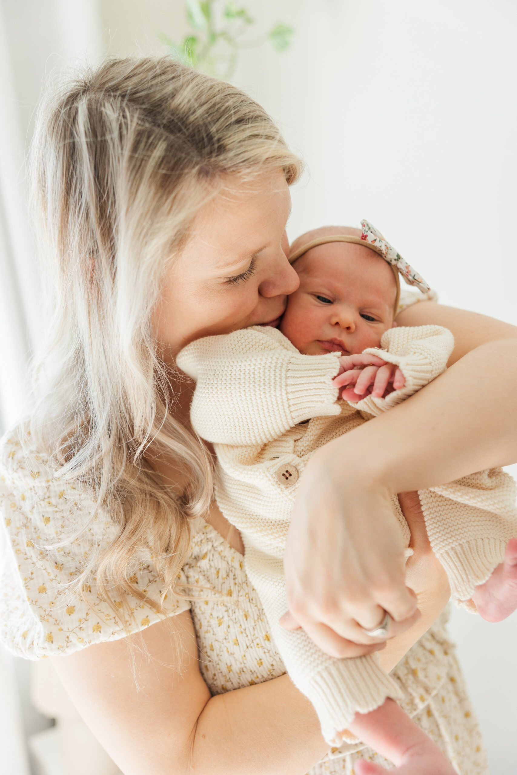 In home newborn session for a brand new baby and her older sisters with mom and dad. Those first few weeks with baby are so precious and go so fast!